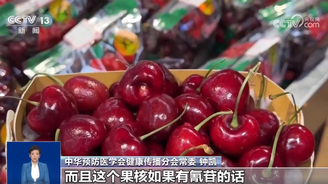 中华预防医学会健康传播分会常委 钟凯:水果当中氰苷的量也是非常少的,而且它主要是存在于水果的果核里面,车厘子的果核是非常硬的,我们不太可能把它咬开,吃里面的果核。而且这个果核如果有氰苷的话,它会有微微的苦味,其实是一种提示,告诉动物不要吃我的籽儿,我要繁殖,我要传播。我们正常吃水果的时候,只要不去咬破果核,故意去嚼、故意嚼很多的话是不可能中毒的。